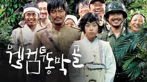 영화 '웰컴 투 동막골'은 2005년에 개봉한 영화로 네이버 영화 평점 8.90점, 관객수 643만 명을 동원한 영화입니다. 대종상 영화제에서 여우 조연상, 청룡영화상에서 남우조연상, 여우조연상, 한국영화 최다관객상 등을 수상하며 평론가의 호평을 받았습니다. 이 영화는 1950년 한국전쟁이 한창이던 때 산골 깊숙이 고립된 작은 마을 동막골을 배경으로 펼쳐집니다. 미군 전투기 한 대가 추락하여 연합군 병사 스미스(스티브 태슐러가 동막골에 도착하고, 이를 목격한 여일(강혜정)이 마을에 소식을 알리러 가는 도중 인민군 리수화(정재영) 일행을 만나 마을로 데려옵니다. 길을 잃은 국군 표현철(신하균) 일행 역시 동막골을 찾아오면서 국군, 인민군, 연합군의 어색한 기류가 포착됩니다. 동막골에 추락한 미군 전투기가 적에 공격을 받았다고 오인한 국군이 동막골을 공격하려 하자 국군, 인민군, 연합군은 유래 없는 공동작전을 펼치며 동막골을 수호합니다.