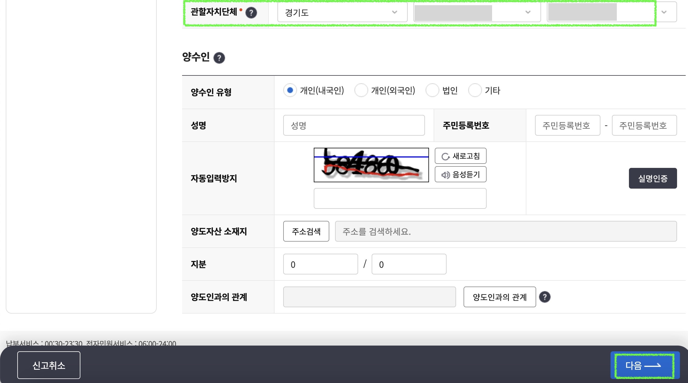 [4] 신고기본정보 > 관할 자치단체를 입력합니다.